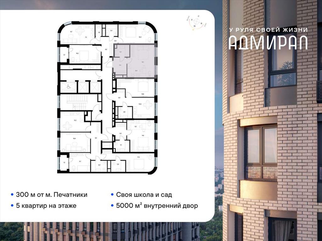 Квартира находится в корпусе жилого комплекса бизнес-класса «Адмирал», расположенного по адресу г. Москва, ул. Шоссейная, 4Д. (Застройщик - «Галс Девелопмент») .