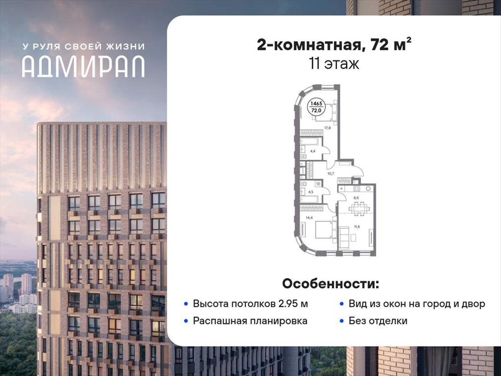Квартира находится в корпусе жилого комплекса бизнес-класса «Адмирал», расположенного по адресу г. Москва, ул. Шоссейная, 4Д. (Застройщик - «Галс Девелопмент») .
