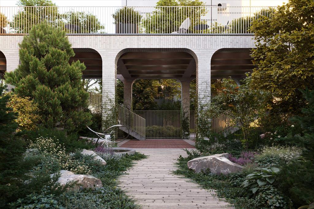 58 машиномест в подземном паркинге. Каждое - с зарядкой для электромобиля. Есть мотоместа. Предусмотрено хранение велосипедов и самокатов, колясочные и лапомойки. В приватном атриумном дворе сад с дорожками из натурального камня, воркаут-зона, места для отдыха и работы. Отдельная парковка для курьеров. Для курьеров будет отдельный вход, чтобы не пересекаться с остальными жильцами.