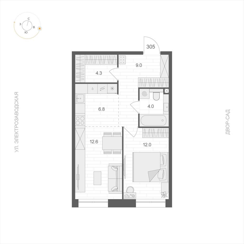 | Однокомнатная квартира по ул. Электрозаводская, 60 в Москве |