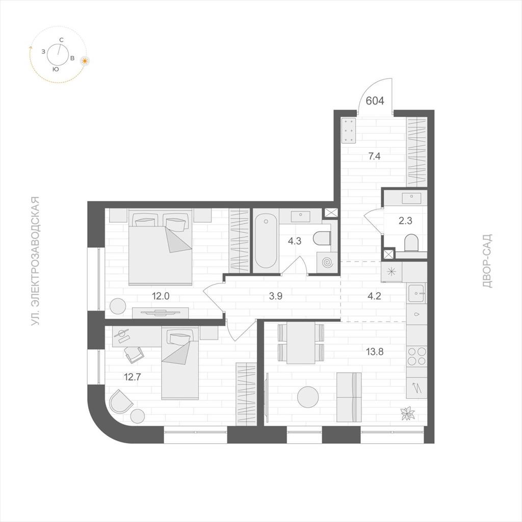 | Двухкомнатная квартира по ул. Электрозаводская, 60 в Москве |