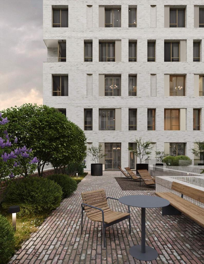 58 машиномест в подземном паркинге. Каждое - с зарядкой для электромобиля. Есть мотоместа. Предусмотрено хранение велосипедов и самокатов, колясочные и лапомойки. В приватном атриумном дворе сад с дорожками из натурального камня, воркаут-зона, места для отдыха и работы. Отдельная парковка для курьеров. Для курьеров будет отдельный вход, чтобы не пересекаться с остальными жильцами.
