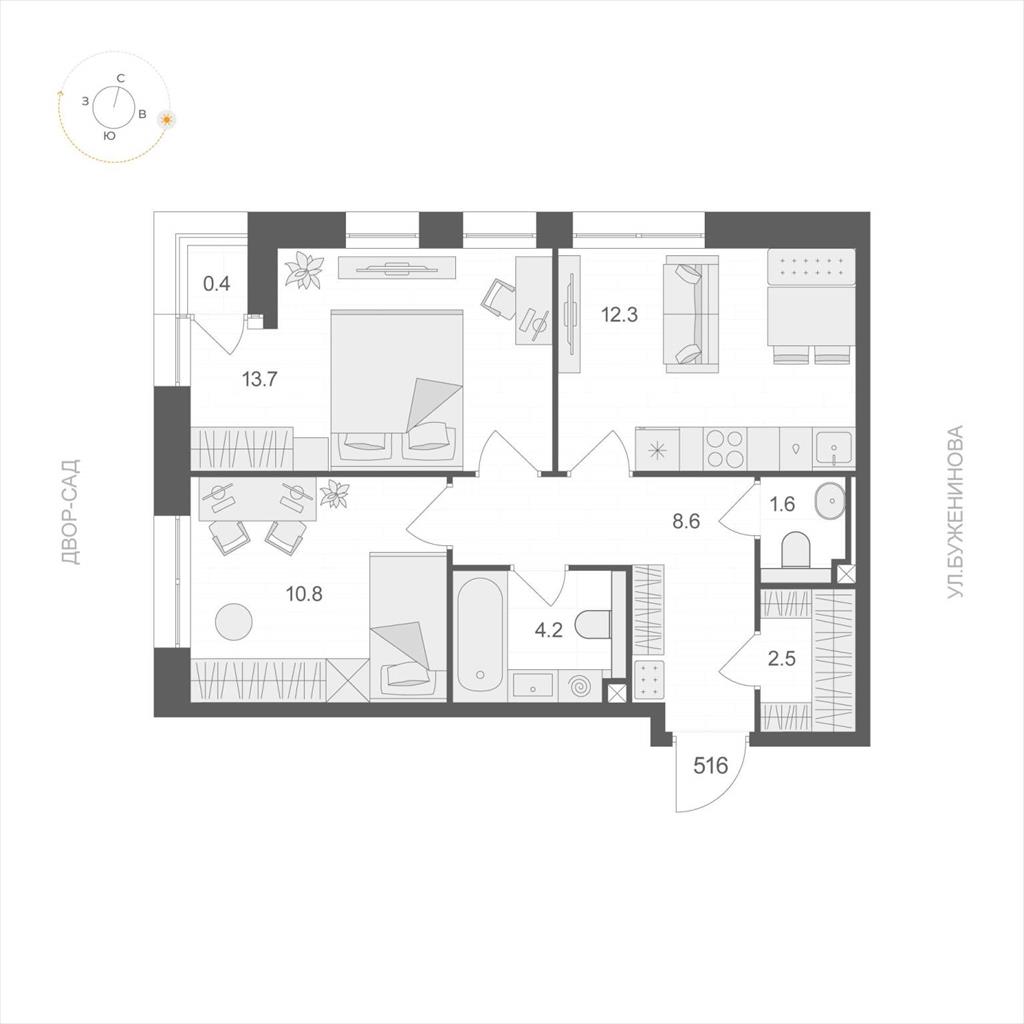 Квартира без отделки. Доступна опция дозаказа (2 варианта отделки на выбор) .