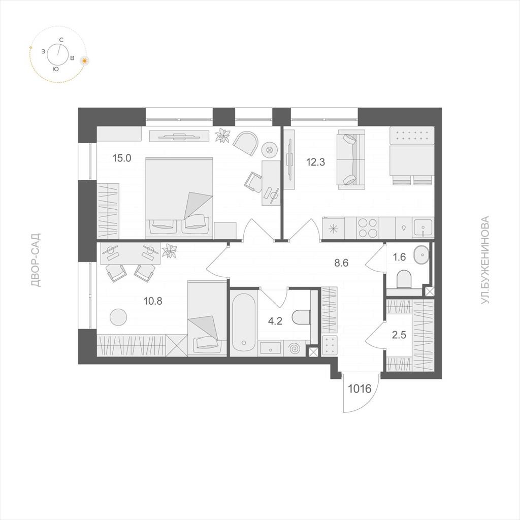 Квартира без отделки. Доступна опция дозаказа (2 варианта отделки на выбор) .