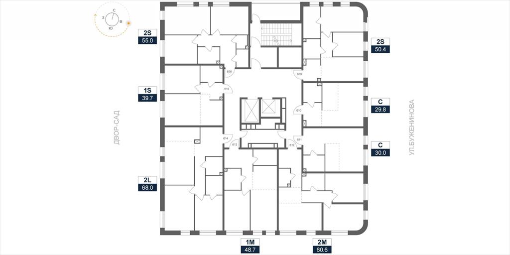 58 машиномест в подземном паркинге. Каждое - с зарядкой для электромобиля. Есть мотоместа. Предусмотрено хранение велосипедов и самокатов, колясочные и лапомойки. В приватном атриумном дворе сад с дорожками из натурального камня, воркаут-зона, места для отдыха и работы. Отдельная парковка для курьеров. Для курьеров будет отдельный вход, чтобы не пересекаться с остальными жильцами.