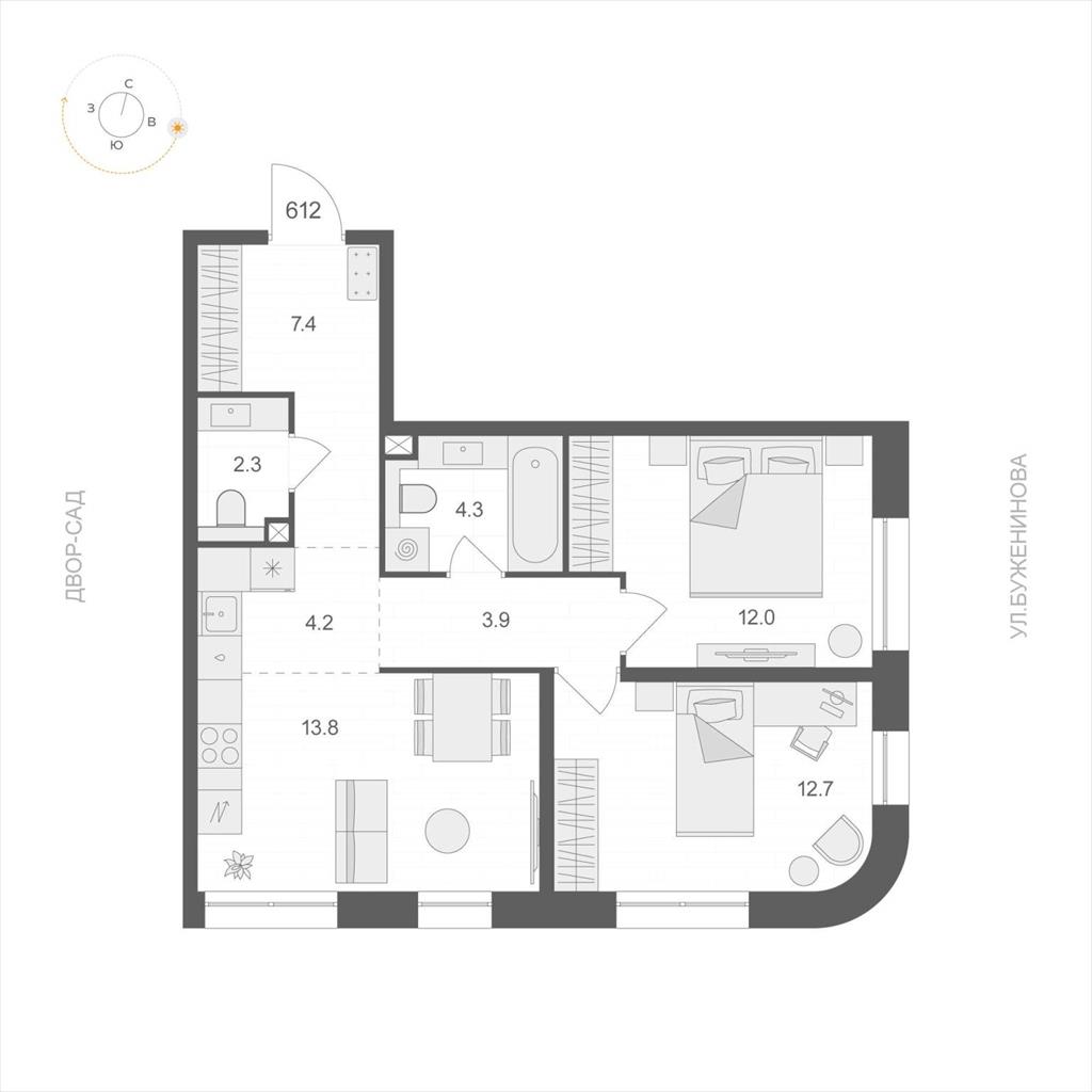 Квартира без отделки. Доступна опция дозаказа (2 варианта отделки на выбор) .