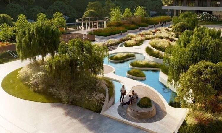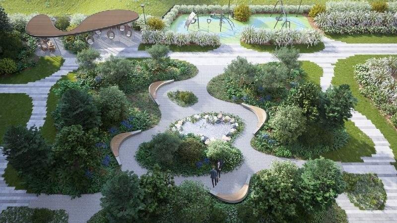 Закрытый двор без машин обеспечен круглосуточной охраной и системами контроля доступа. Двор создан как ландшафтное продолжение окружающих природных парков и зонирован для различных видов отдыха, детских игр, занятий спортом.