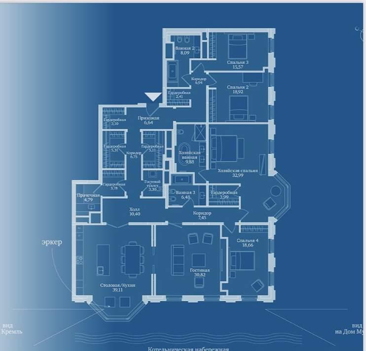 Из панорамных окон и эркеров квартиры открываются неповторимые виды на Москва-реку, Кремль, парк " Зарядье, знаменитую сталинскую Высотку на Котельнической набережной, Дом Музыки и набережную.