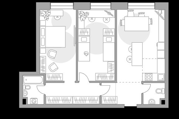 Жилая площадь 55.05 м2, кухня 3.29 м2. Площадь комнат: 20.19/17.71/17.15 м2, квартира без отделки, окна выходят на улицу.