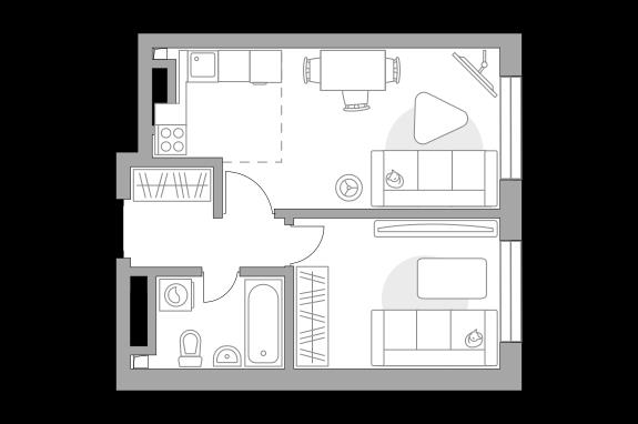 Жилая площадь 24.48 м2, кухня 4.66 м2. Площадь комнат: 13.24/11.24 м2, квартира без отделки, окна выходят на улицу.