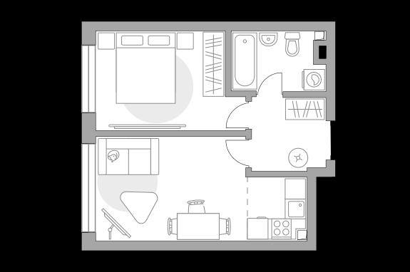 общая 37,93 м2, жилая 24,8 м2, кухни 3,37 м2 |