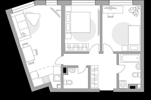 общая 64,14 м2, жилая 41,68 м2, кухни 4,1 м2 |