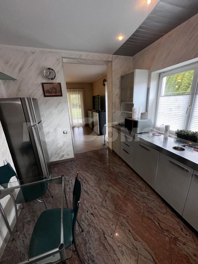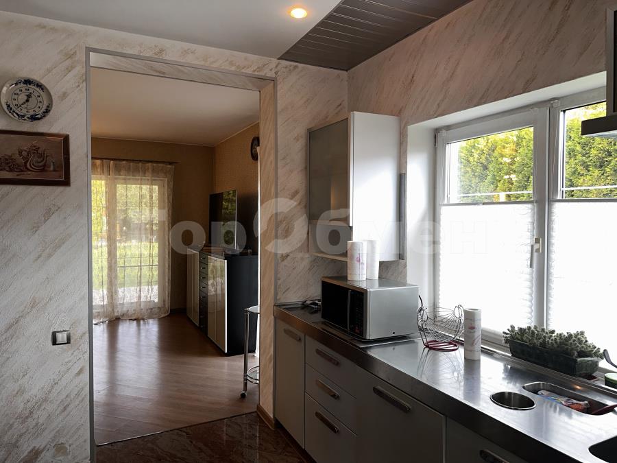 Дом 132 кв. м, 2 этажа, материал кирпич, перекрытия деревянные, окна пвх, кровля металлочерепица; наружная отделка - фактурная штукатурка; полы - плитка, ламинат; отопление - централизованное, газовое.