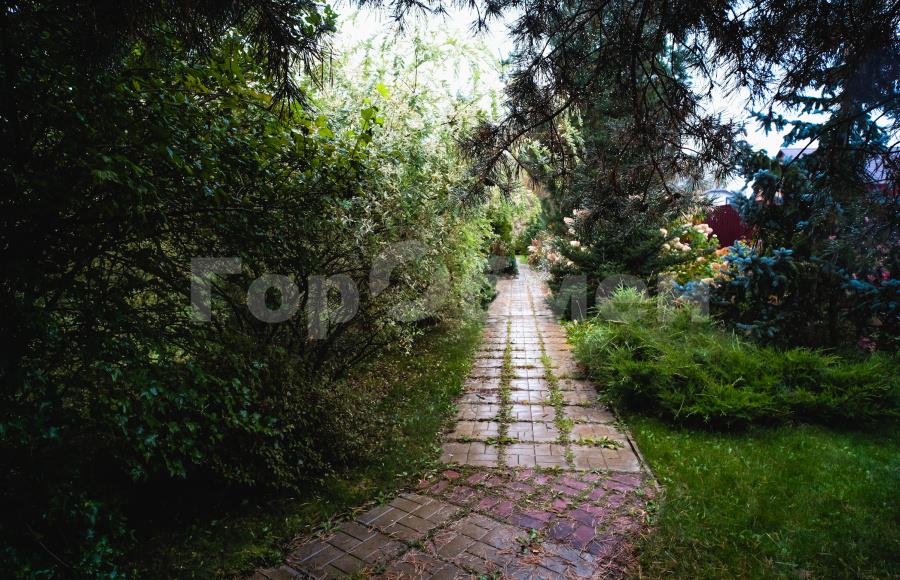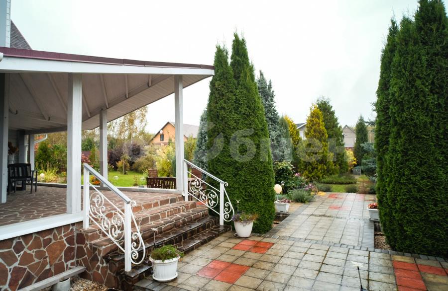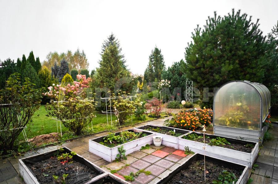 Территория участка облагорожена плодовыми и декоративными деревьями (соснами, туями, елками), цветами и кустами (розами, гортензиями, ирисами, лавандой, сиренью).