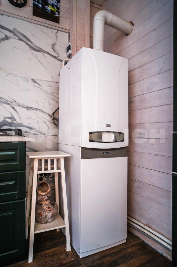 Коммуникации: магистральный газ, электричество 15 квт, скважина. Канализация - септик Топас. Имеется батарея резервного автономного электроснабжения.