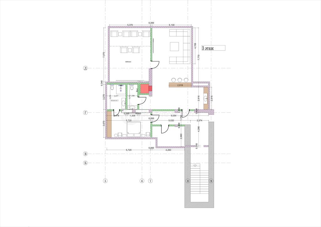 3 этаж: спальня с санузлом, гардеробная комната, холл-кухня, гостевой санузел, гостиная, кинозал, кладовая.