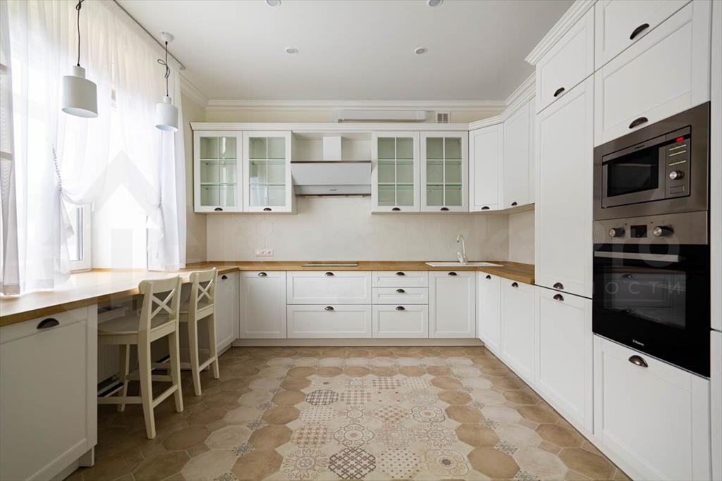 | Продам светлый дом 354,1 м2 на зеленом участке 13 сот.. В доме большая гостиная -столовая с выходом на террасу и участок, кухня, оборудованная всей необходимой техникой западных брендов, гостевая спальня, гардеробная комната, гостевой санузел, бойлерная., гараж на два автомобиля. Перед гаражом есть также парковка на два автомобиля.