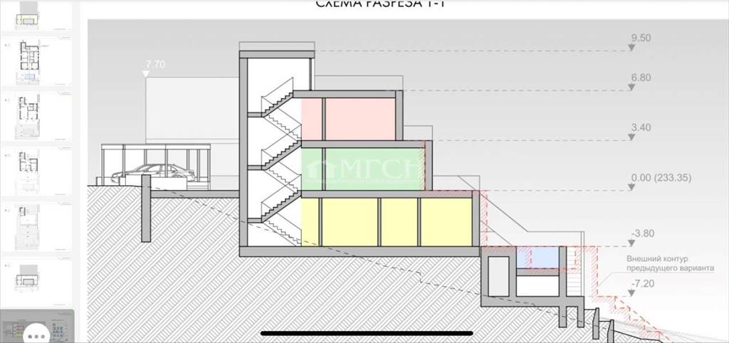 | Лот № 73699 Дом Вашей мечты... Продается не оконченный строительством трехэтажный жилой дом площадью 400 кв.м. на земельном участке 10 соток, предназначенном для ИЖС, на котором произведено террасирование участка. До пляжа Мамайки на машине 10 минут езды, до пляжа Дагомыса 15 минут езды на машине. Имеется проект дома, подготовленный ООО Желдорпроект . Строительством дома занимался Подрядчик с большим опытом и отличной репутацией с контролем собственника ведения строительства в режиме реального времени. Масштабы проведенных работ Вас удивят... Все согласования и разрешения получены должным образом. Над уровнем дороги возвышается два этажа. Кровля эксплуатируемая, с которой открывается шикарный вид на море, ничем не ограниченный и открывающийся в том числе на гостиничный комплекс Дагомыс-Интурист, впереди участка Национальный парк, в котором невозможно какое-либо строительство.... Ниже уровня дороги один этаж.Вход в дом - на средний уровень с гостиной и кухней-столовой и выходом на широкую террасу. На этом этаже есть санузел у входа, кладовая для продуктов с отдельным входом и гардеробная верхней и сезонной одежды при входе. Терраса имеет спуск по лестнице к бассейну, на уровне бассейна есть пространство для постройки /размещения бани. С уровня гостиной можно подняться вверх на приватный уровень или спуститься вниз на этаж с гостевыми спальнями, открытым бассейном и техническими помещениями. На верхнем уровне расположены две большие спальни с выходом на широкую террасу с видом в сторону моря, ванная комната с панорамным видом. Есть большая просторная гардеробная. На нижнем уровне по видовой линии располагаются четыре гостевые спальни, а также два санузла и гардеробная. На этом же уровне, с отдельным входом с улицы, расположена студия для помощницы по дому с собственным санузлом, оборудованным душевой. В глубине дома- котельная. В уровне нижнего этажа - терраса с открытым бассейном. Конструктив дома готов на 70%. Газ проходит по границе участка. Заключен Договор на водоснабжение, установлен септик. Круглогодичный комфортный подъезд. Без запретов и обременений. Звоните, оперативный показ. Дмитрий МГСН на Таганке |