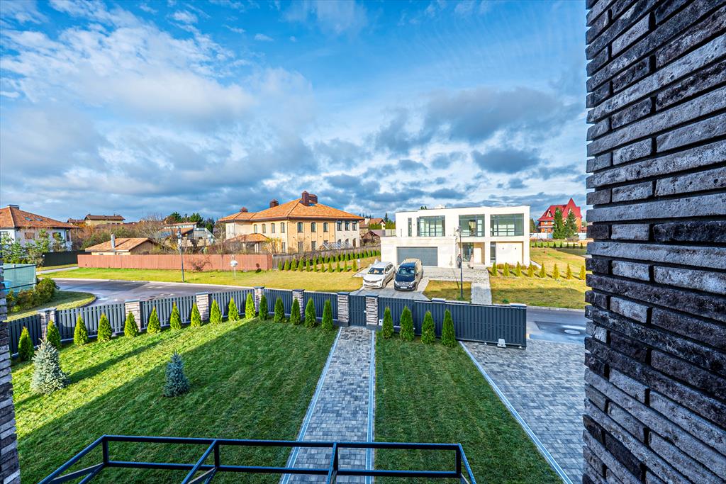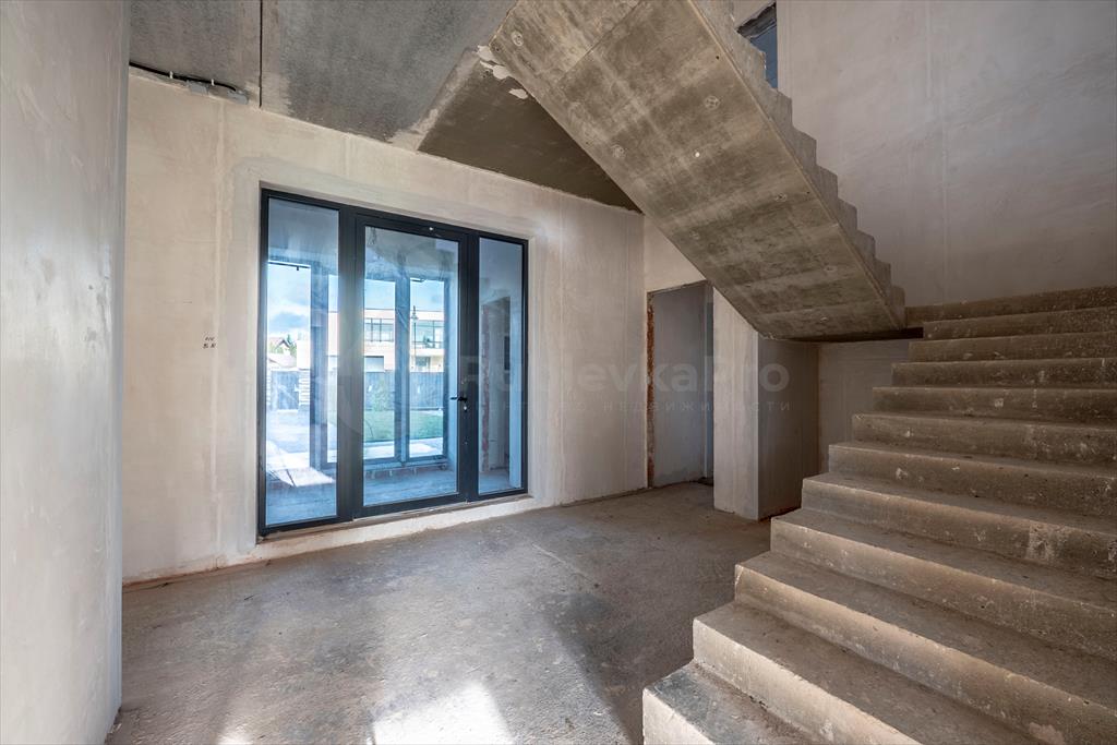 Войдите в дом и оставьте суету вместе с верхней одеждой в гардеробной. Потом Вы попадаете в просторную гостиную с камином и кухню-столовую с множеством окон в пол, ароматный званый ужин для гостей можно приготовить в закрытой технической кухне, расположенной в стороне от общей зоны. На первом этаже в спальне можно оставить гостей или родственников отдохнуть, в спальне есть свой санузел и гардероб.