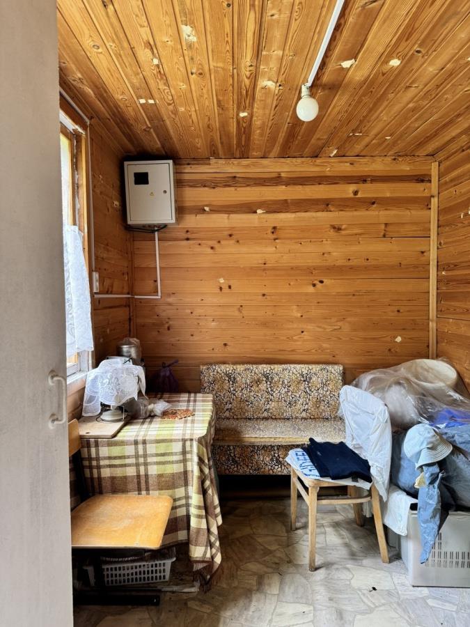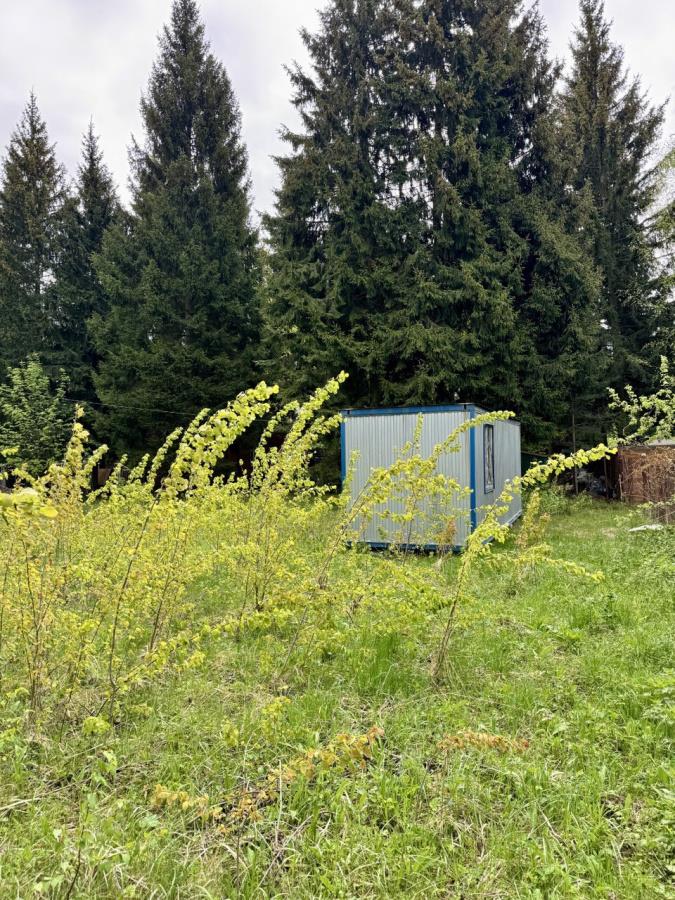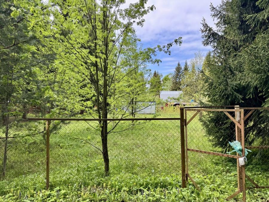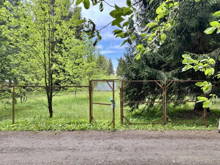 На участке расположен хозяйственный блок с двумя комнатами, что позволяет использовать его как временное жилье или бытовку во время строительства. Территория ухожена, установлены въездные ворота.