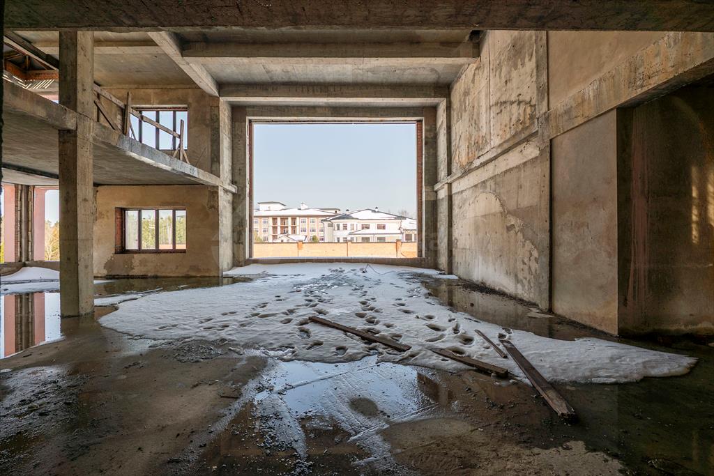 На участке есть монолитно-кирпичный дом 1814 м2 в трех уровнях под демонтаж или, при желании, под отделку.
