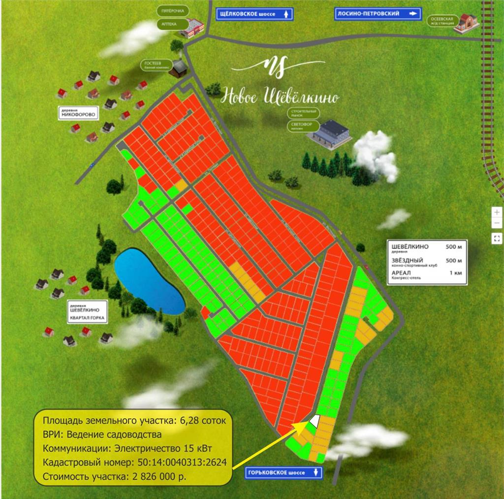| ОТ СОБСТВЕННИКА! Продается земельный участок площадью 6,28 сотки, расположенный вблизи д. Шевелкино Щелковского района. Кадастровый номер- 50:14:0040313:2624. Категория земель: Земли сельскохозяйственного назначения, вид разрешенного использования: ведение садоводства, что позволяет строить жилой дом, получить адрес и постоянную прописку. Участок ровный, сухой, расположен всего в 18,5 км от МКАД по Щёлковскому шоссе или 20 км по Горьковскому шоссе. Поселок граничит с населенными пунктами Никифорово и Шевелкино. В 400 м находится остановка общественного транспорта. До ж/д станции Осеевская Ярославского направления 2 остановки (5 минут) на общественном транспорте. Все работы по планированию территории и благоустройству дорог поселка завершены, поселок активно застраивается. На каждый участок подключено электричество 15 кВт 380В. В перспективе возможна газификация, так как рядом расположена газораспределительная станция. В шаговой доступности банный комплекс Гостеев, сетевой магазин Пятерочка, Аптека, конно-спортивный комплекс Звездный, конгресс-отель Ареал. |  |