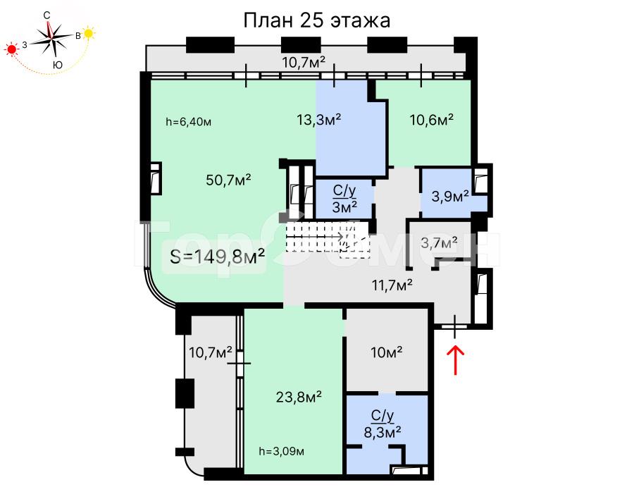 • LAST FLOOR: 25-й этаж. Никаких соседей сверху. Только небо и вид на воду (Юго-Запад, закаты).