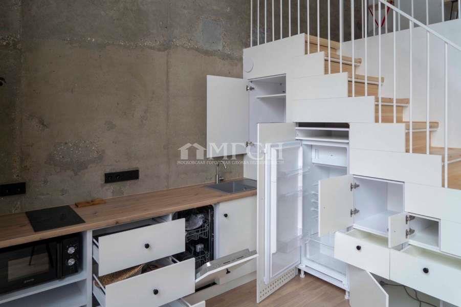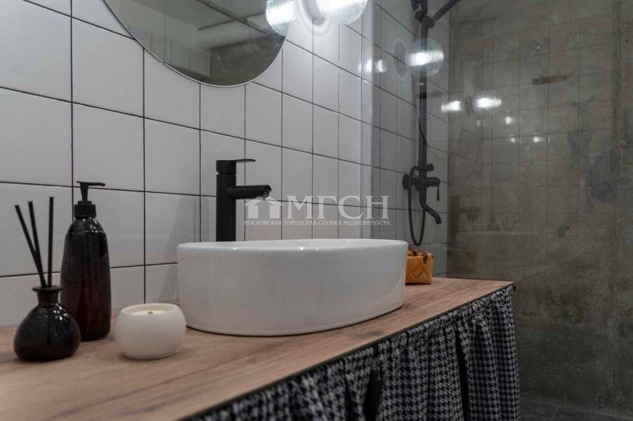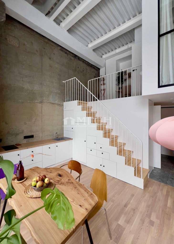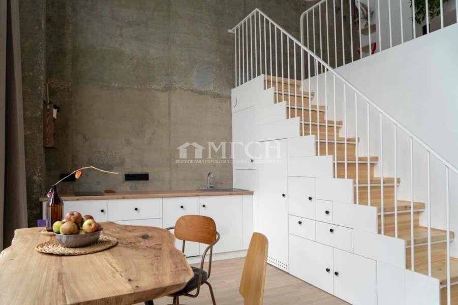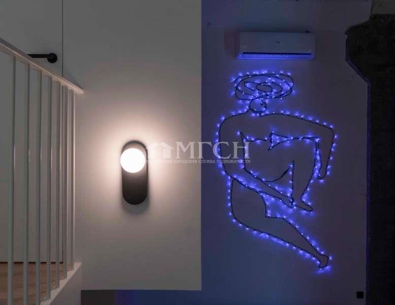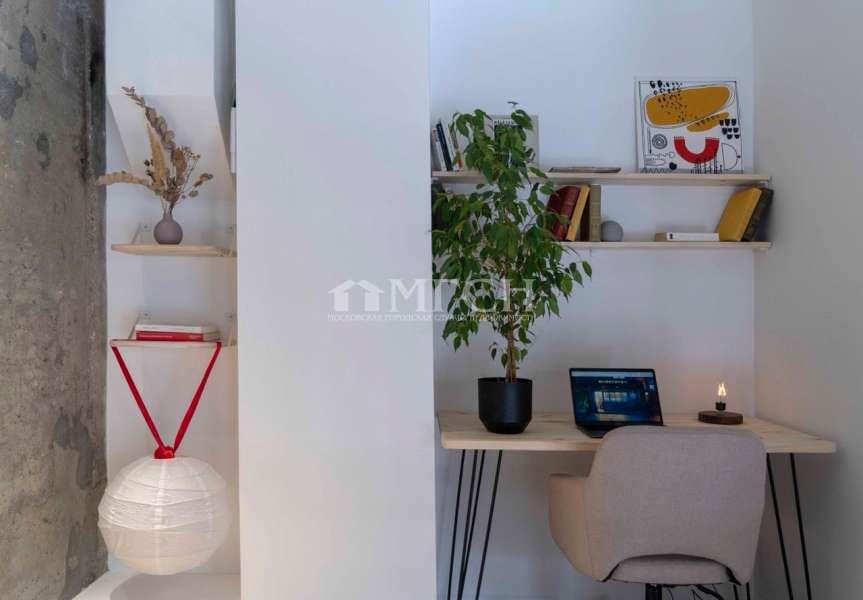 В квартира выполнен дизайнерский ремонт в стиле скандинавский лофт с панорамными окнами в пол. Общая площадь - 53м2, включая отдельную спальню (кровать 200*160), отдельную гардеробную комнату, кабинет, просторную гостиную, зону кухни и с.у. Большое светлое пространство гостиной со вторым светом имеет высоту около 5 метров.