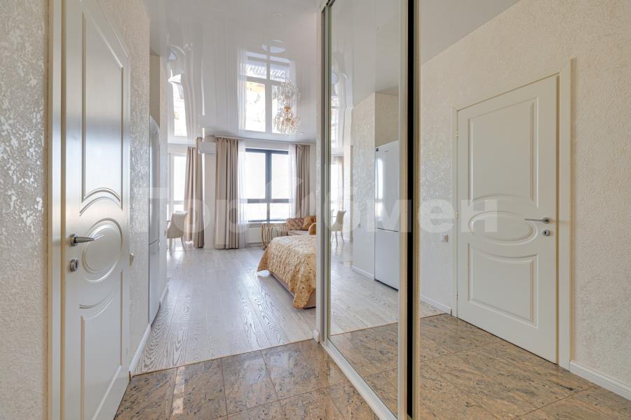 Есть гардеробная. В прихожей установлен большой встроенный шкаф -купе с зеркальными дверцами.