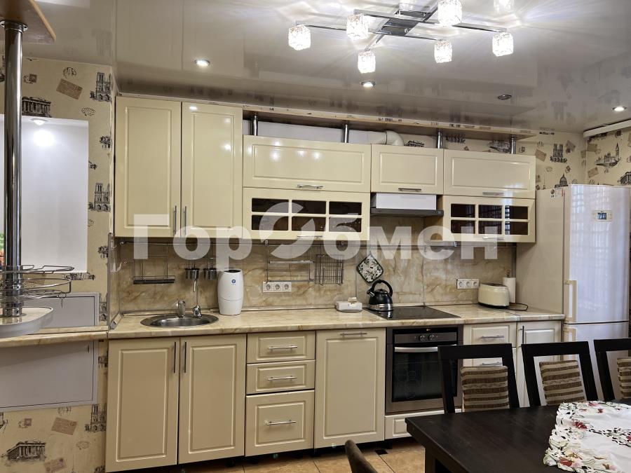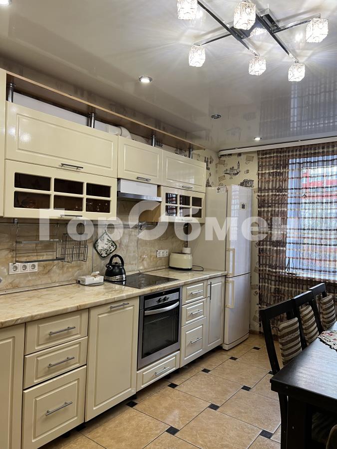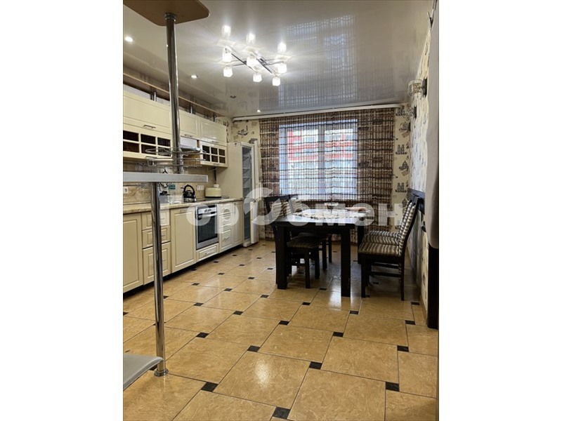 Кухня оборудована красивым современным гарнитуром цвета ваниль с удобной барной стойкой, с импортной бытовой техникой преимущественно LG и Gorenje: варочная панель, духовой шкаф, вытяжка, посудомоечная машина, широкий холодильник, тостер, чайник и т.д. Кухня вытянутой формы, поэтому она позволяет за обеденным столом разместить на постоянной основе не менее 8 человек.