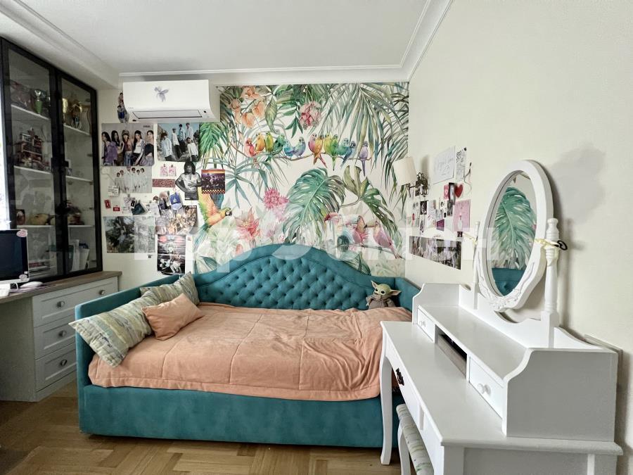 ПЛАНИРОВКА: три изолированные комнаты - спальня и две детские комнаты; гостиная; 2 с/у; большая кухня, оборудованная встроенной мебелью и техникой siemens (индукционная варочная панель, духовка, микроволновка, посудомоечная машина, вытяжка, холодильник, фильтр для питьевой воды), из кухни выход на застекленную лоджию; Есть стиральная машина samsung, телевизоры, кондиционеры Daikin, теплые полы.