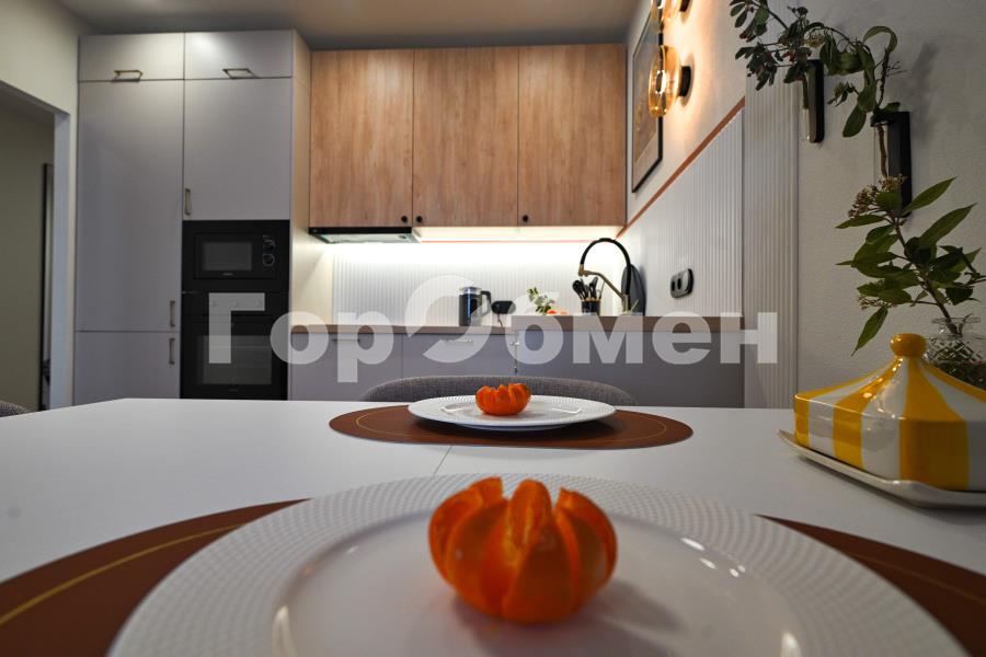 Мебель, посуда, техника - абсолютно новые, включая измельчитель и фильтр для воды, в квартире еще никто не жил. Стиральная машина с функцией сушки.
