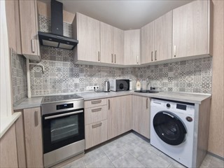 ** Квартира в современном стиле с новой корпусной мебелью и техникой.