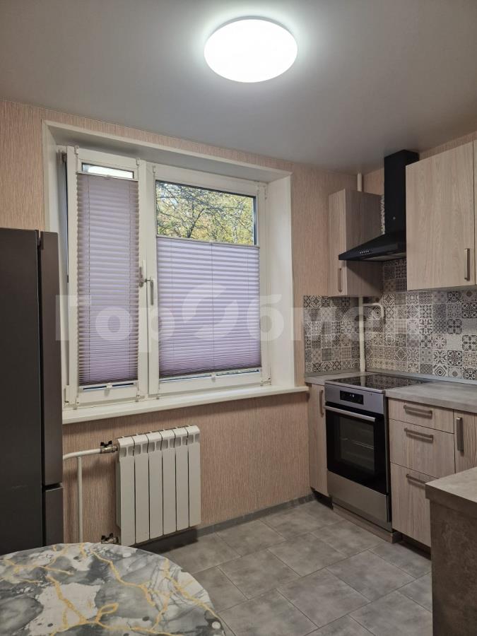* **Кухня (8 кв.м) оснащена встроенной мебелью с индукционной плитой и духовкой, вытяжкой, микроволновкой, холодильником, стиральной машиной, обеденным столом и стульями . В комнате 16,8 кв.м есть: 2-х спальный диван, 2 вместительных комода, 3-х створчатый шкаф. Около окна рабочее место. Вся мебель современная и функциональная.