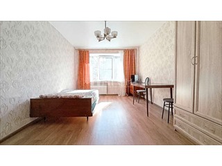- Просторная комната 20 кв.м. со спальным местом (совершенно новый раскладной диван, куплен в марте 2026 г.), письменным столом, 2 стульями, тумбой, телевизором и шкафом для хранения вещей.