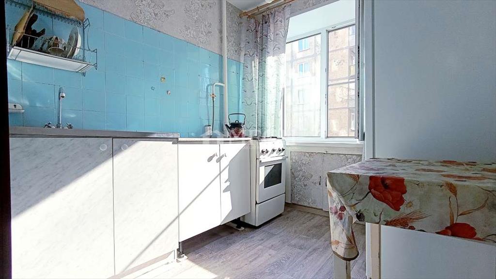 - Кухня 6 кв.м. оснащена кухонными шкафами, газовой плитой, холодильником, обеденным столом.