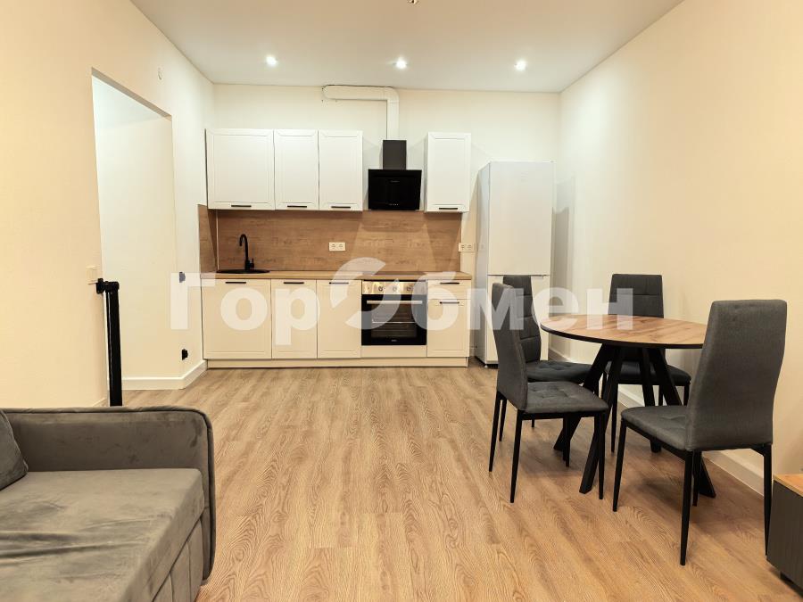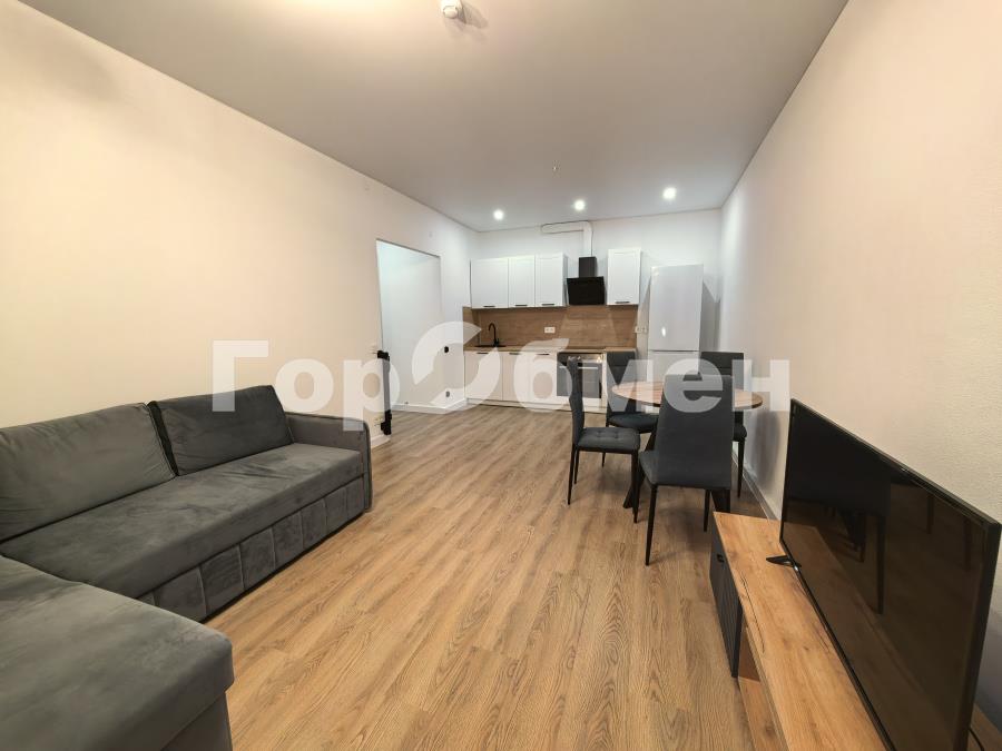 Квартира оснащена всей необходимой мебелью и бытовой техникой (электрическая варочная панель, электрический духовой шкаф, вытяжка, полноразмерный холодильник, стиральная машина).