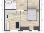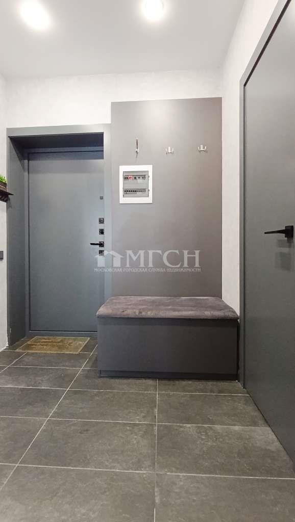 - Коридор оборудован вешалкой для верхней одеждой и пуфом с полками для обуви.