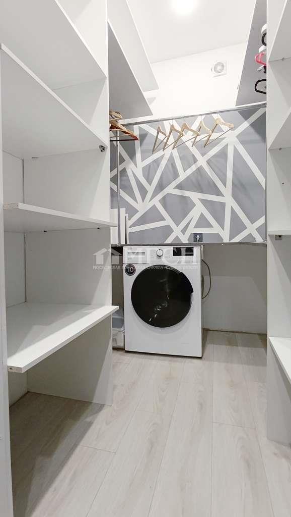 - Гардеробная-постирочная с местами хранения и встроенной стиральной машиной-сушилкой.