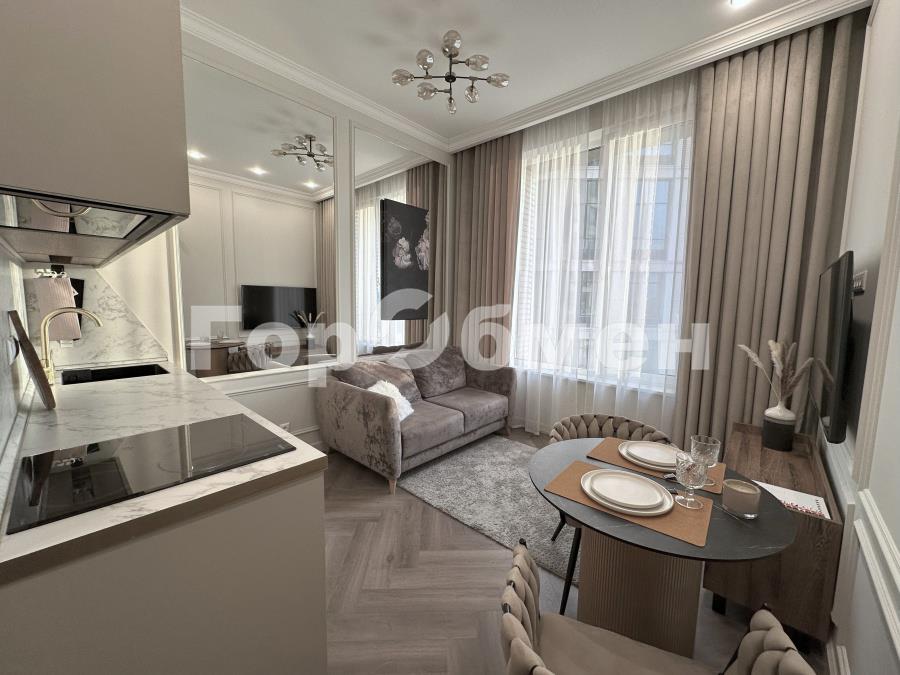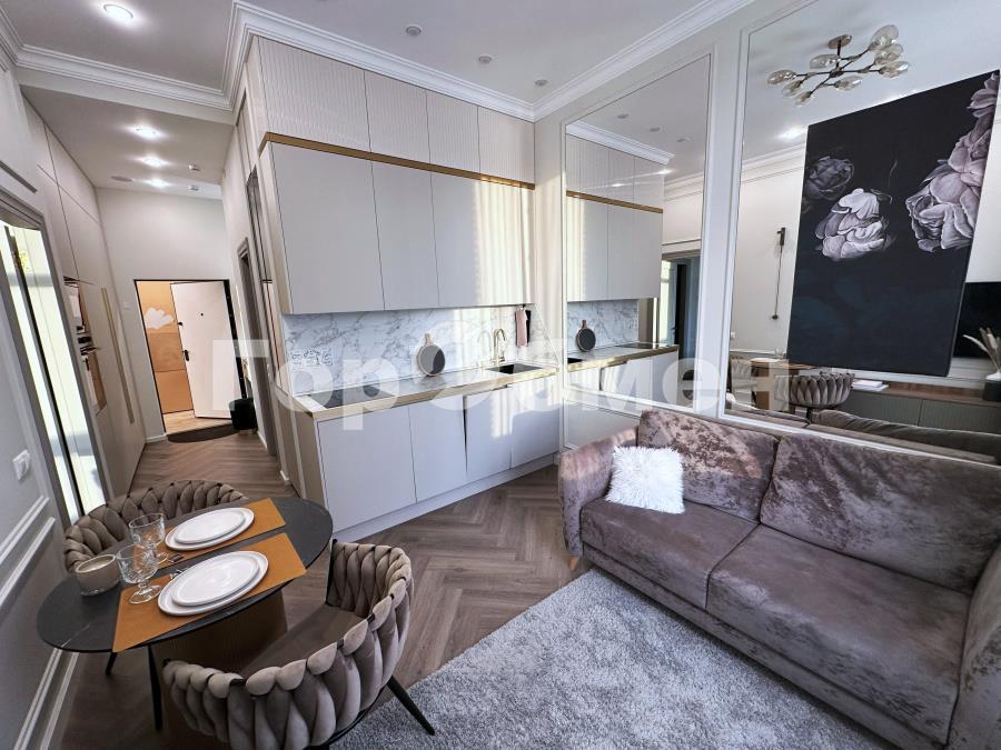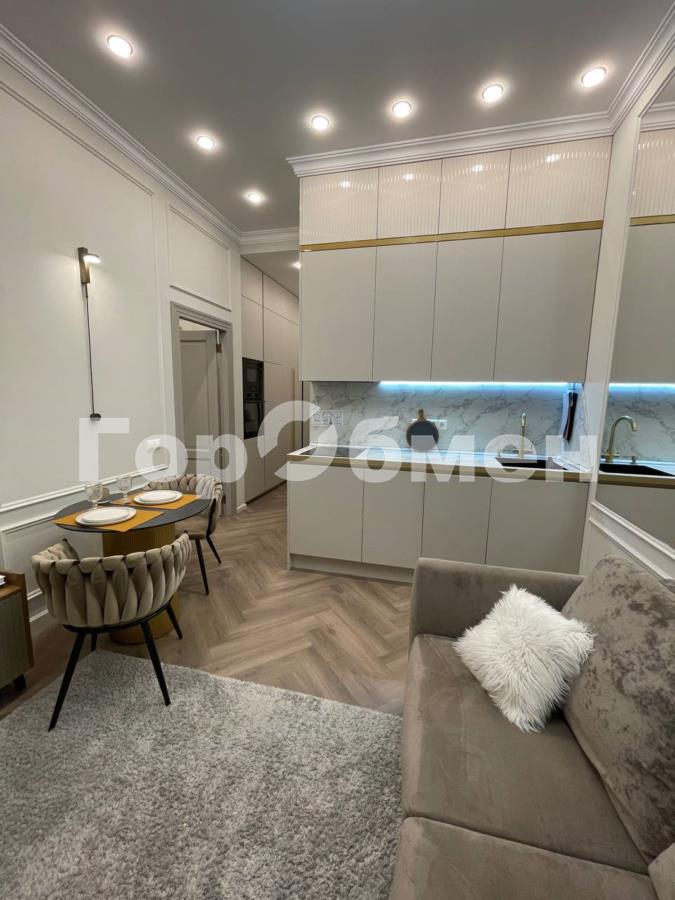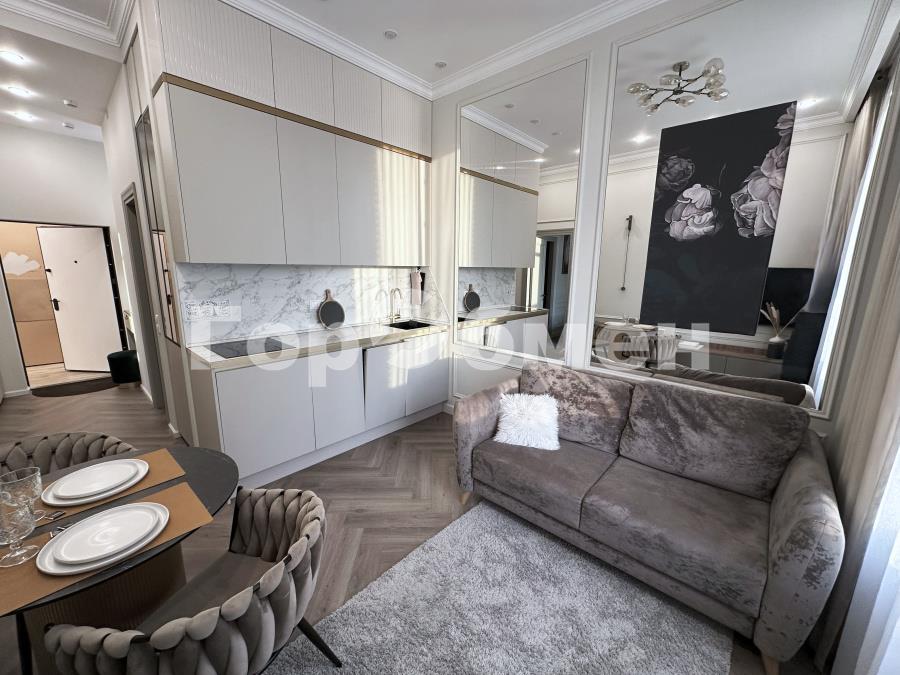 Общая площадь 44 кв.м., удобная функциональная планировка квартиры, высокие потолки 3,3 м, в сочетании большим количеством встроенных шкафов делают квартиру просторной, светлой и объемной. Спальня 17 кв.м. с огромной гардеробной и лоджией, кухня – гостиная 16 кв.м. Санузел совмещен. Квартира оборудована всем необходимым для комфортного проживания: встроенная кухонная мебель и техника: холодильник, варочная поверхность, духовой шкаф, СВЧ, посудомоечная машина 45 см, кондиционер, бризер, телевизор, стиральная и сушильная машины, кровать с ортопедическим матрасом 160 см. Квартира в идеальном состоянии, после дизайнерского ремонта.