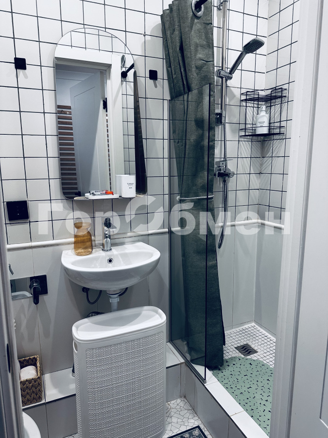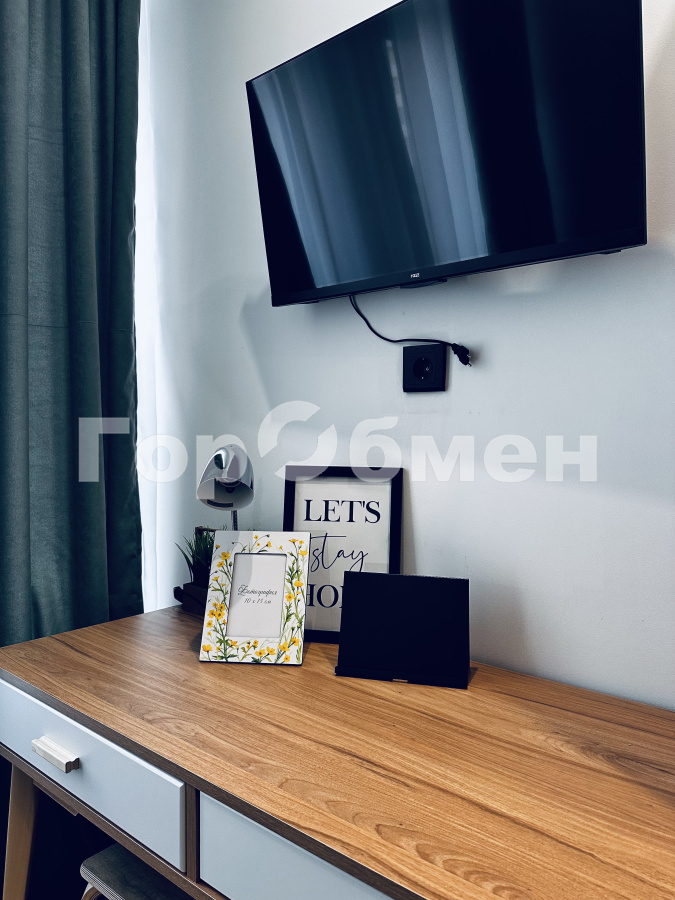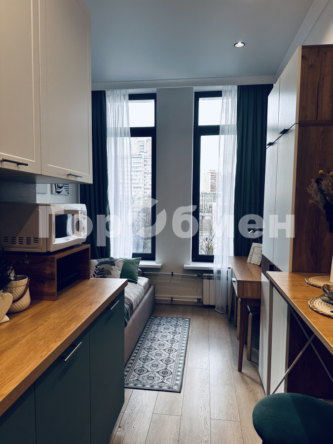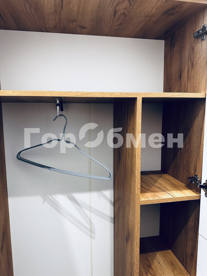 входная дверь с зеркалом во весь рост, совмещенный оборудованный санузел, два вместительных шкафа для вещей, удобная кровать, письменный стол, телевизор, кухонная зона с холодильником, стиральной машинкой, свч, настольной электрической плиткой для готовки, чайником и кухонными принадлежностями. Также имеется вместительная антресоль, куда можно положить габаритные вещи.