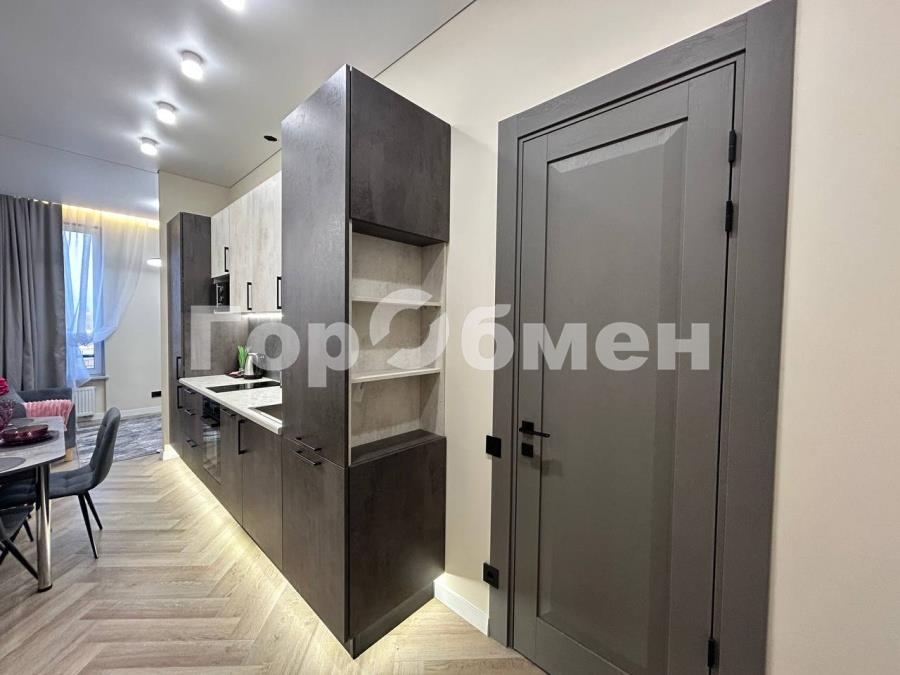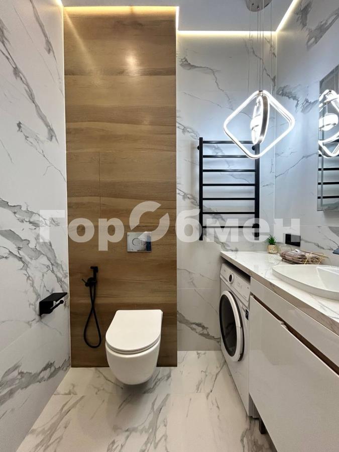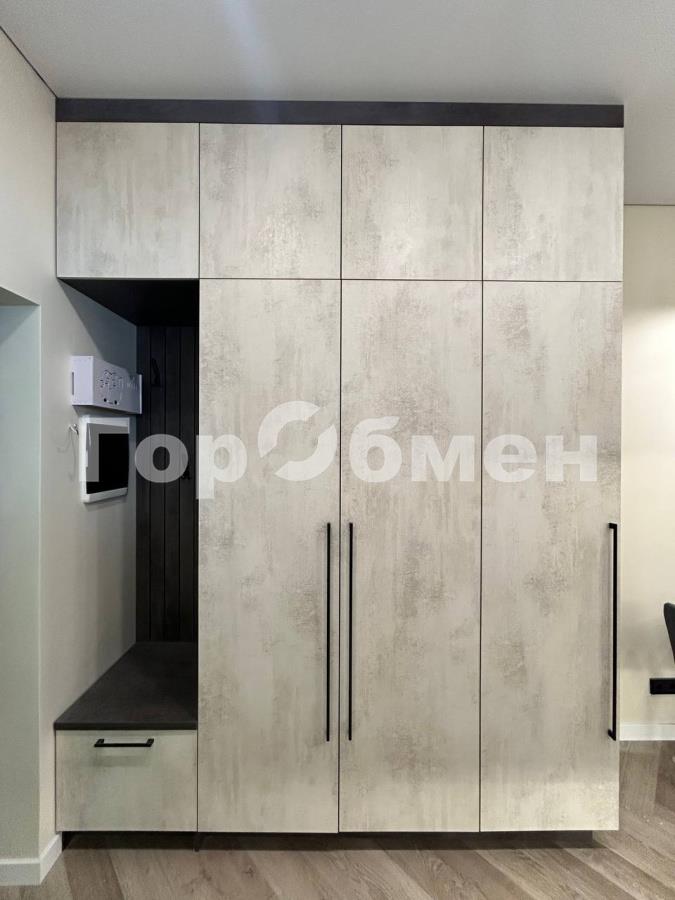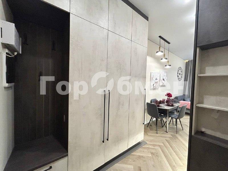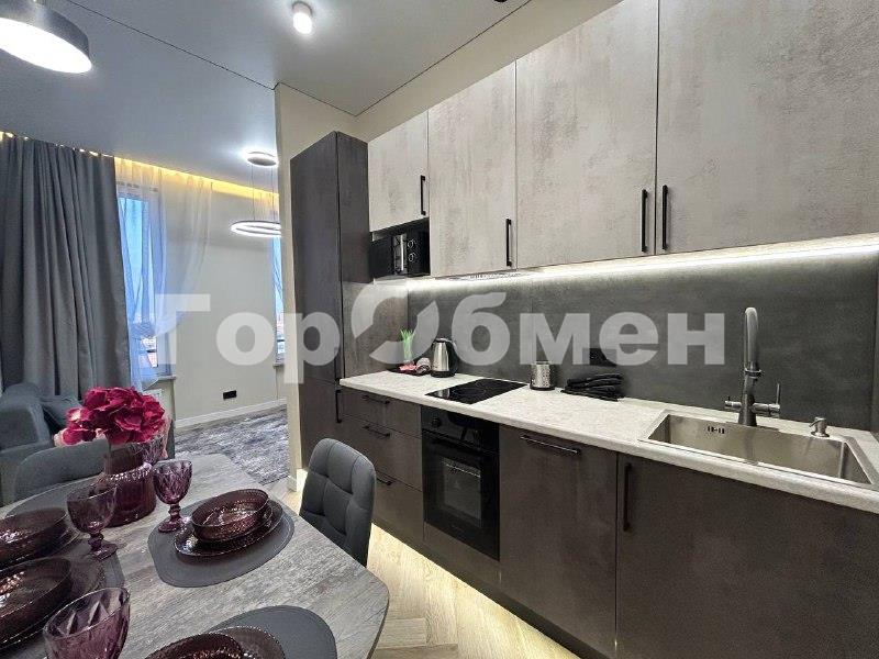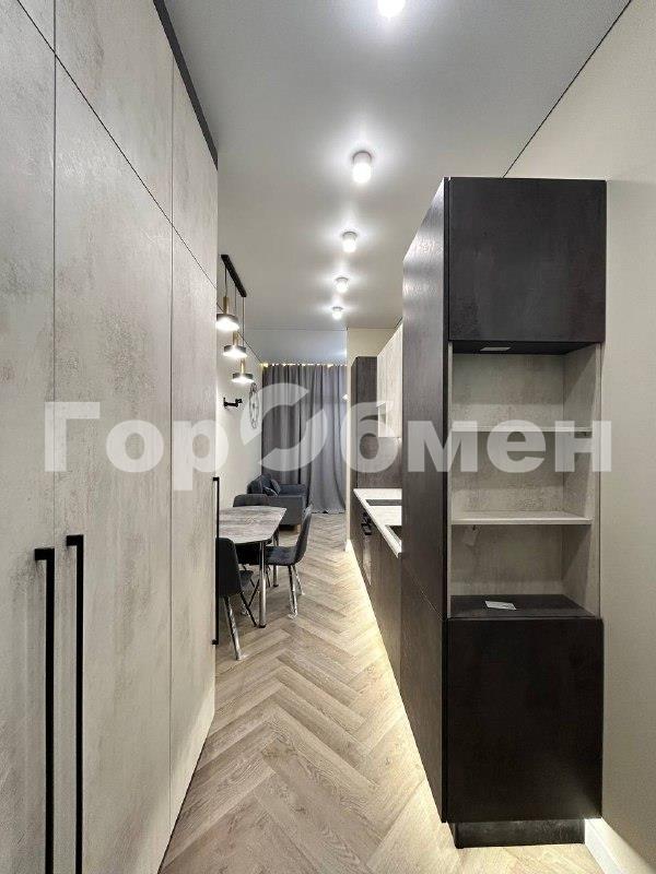 Пространство поделено на 3 зоны: кухонная зона с встроенным гарнитуром и необходимой бытовой техникой, гостиной зоной с удобным диваном, ТВ и функциональным комодом, и спальная зона с двуспальной кроватью (140*200 см). Выполнено красивое освещение. Санузел совмещён, установлена душевая кабина, всё очень стильно и гармонично.
