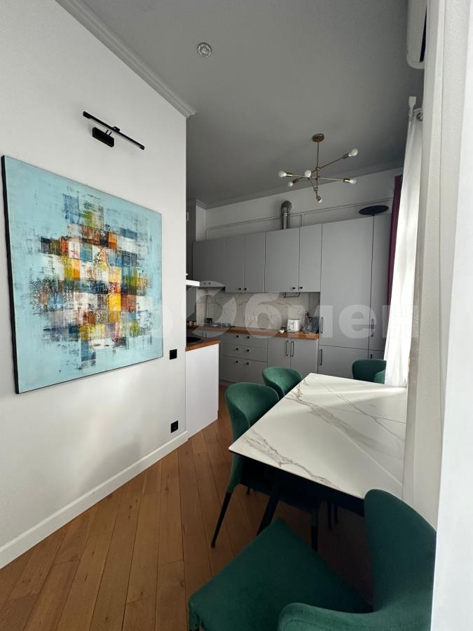 * Кухня с обеденной зоной, большой раздвижной стол, 4 стула.