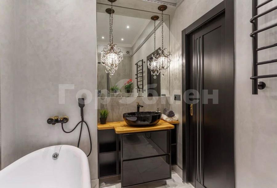 * 1-й: ванна (отдельно стоящая), душевая кабина, туалет, раковина с комодом, гигиенический душ.