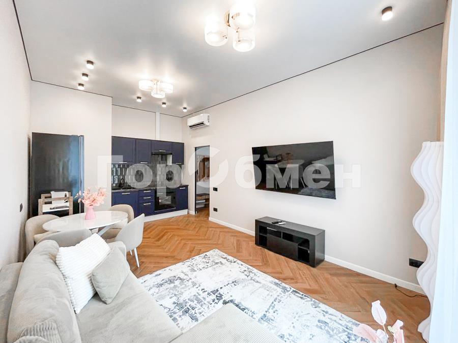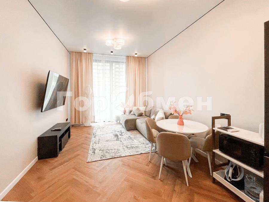 Квартира состоит из просторной кухни-гостинной, светлой спальни, совместного санузла, гардеробной и оборудована всем необходимым для жизни. Понорамные окна обеспечивают большое количество естественного света.