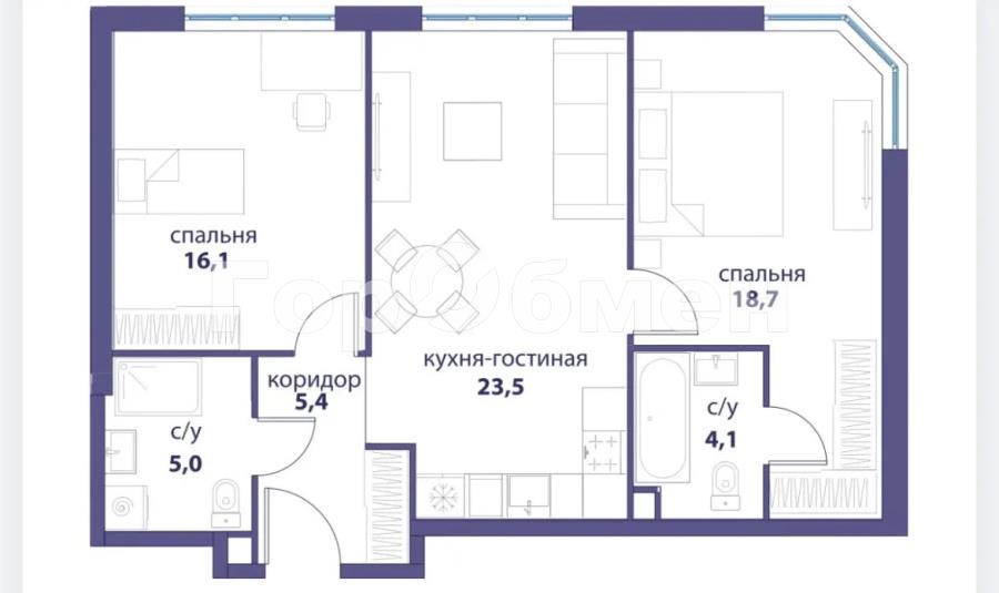 - Удачная планировка, огромная кухня-гостиная 23.5 кв.м